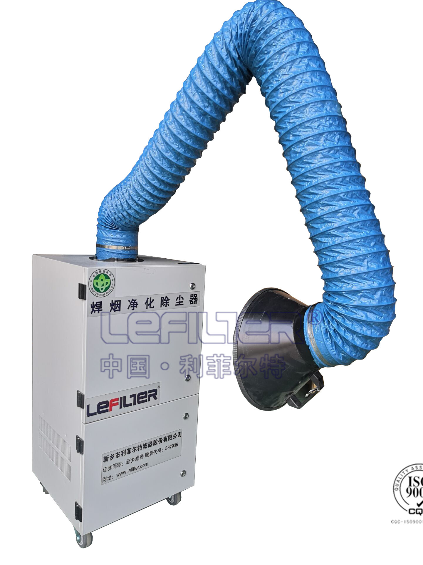 焊煙凈化器組成有:萬向吸塵臂、耐高溫吸塵軟管、吸塵罩(可帶風量調節閥)、阻火網、阻燃高效濾芯(桶式、脈沖反吹裝置、脈沖電磁閥、帶剎車定向腳輪、風機、電機、電控、機體。